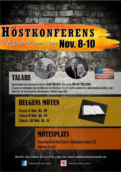 Vi välkommar dig till årets Höstkonferens där våra vänner från USA kommer att förkunna Guds ord för oss, v 45 8-10 November.